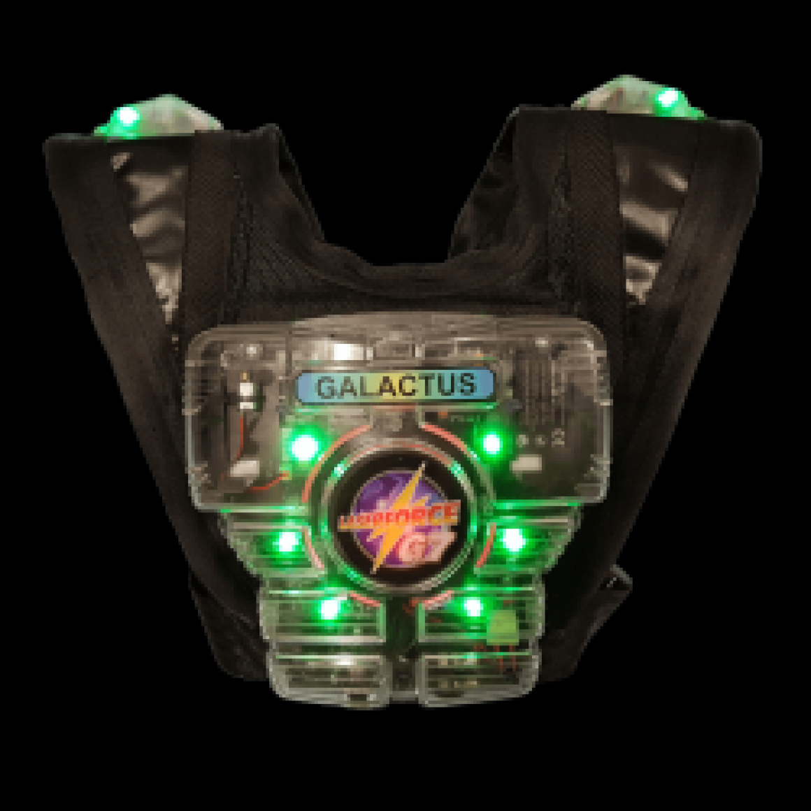 Die Ausrüstung mit stylische Weste und Phaser spricht Spieler aller Alter und beider Geschlechter an. Die Spieler halten ihre RFID Power Cards (Memberkarte) auf ihrer Brustplatte, um sich einzuloggen!